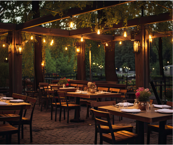 At our outdoor restaurant, we strive to create a dining experience that goes beyond just great food. Surrounded by the beauty of nature, every meal becomes a memorable occasion. Our menu is crafted with the finest, freshest ingredients, offering a blend of classic and innovative flavors to suit every palate. Whether you’re planning a romantic dinner, a family gathering, or a casual outing with friends, our team ensures every detail is perfect. With serene outdoor spaces, impeccable service, and a commitment to quality and safety, we promise an atmosphere where you can relax, enjoy, and create unforgettable memories.