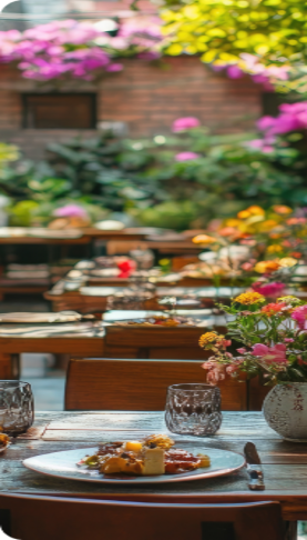 At our outdoor restaurant, we strive to create a dining experience that goes beyond just great food. Surrounded by the beauty of nature, every meal becomes a memorable occasion. Our menu is crafted with the finest, freshest ingredients, offering a blend of classic and innovative flavors to suit every palate. Whether you’re planning a romantic dinner, a family gathering, or a casual outing with friends, our team ensures every detail is perfect. With serene outdoor spaces, impeccable service, and a commitment to quality and safety, we promise an atmosphere where you can relax, enjoy, and create unforgettable memories.